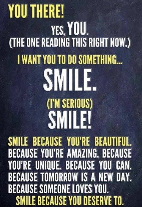 Start your day off by looking in the mirror first thing in the morning and smile at yourself!! I don’t care if you’re hair is all over the place, or you look dog tired...smile. Do it again before you leave the house.